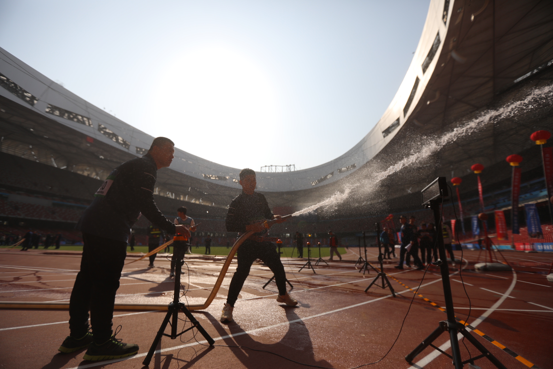 在國(guó)家體育場(chǎng)內(nèi),來(lái)自全市16區(qū)、經(jīng)濟(jì)技術(shù)開(kāi)發(fā)區(qū)、天安門(mén)地區(qū)、重點(diǎn)站區(qū)和軌道交通系統(tǒng)的20支代表隊(duì)、668名消防安全重點(diǎn)單位、社區(qū)(村)自防自救力量隊(duì)員同場(chǎng)競(jìng)技,參加了男子原地著裝佩戴空氣呼吸器、男子個(gè)人全能、女子滅火器滅真火、男(女)子雙人消火栓出真水、團(tuán)體科目6個(gè)競(jìng)賽項(xiàng)目的角逐。